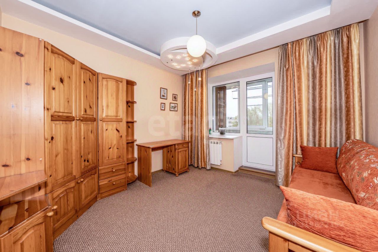 Квартира полностью меблирована и оборудована для комфортного проживания. Кухня оснащена шпонированным гарнитуром из дуба, варочной панелью, газовой духовкой и вытяжкой Zigmund & Shtain, холодильником Stinol, микроволновой печью Samsung, а также обеденным столом со стульями. Пол с подогревом обеспечивает дополнительный уют. В гостиной расположен угловой диван, стенка и журнальный столик. Спальня или детская обставлена мебелью из карельской сосны KOS-PINE: угловой шкаф-купе, комод, этажерка, тумбочка, письменный стол и раскладной диван на два места. В коридоре предусмотрены два встроенных шкафа-купе, один из которых с зеркальными дверцами. Вся необходимая бытовая техника в наличии — стиральная машина, пылесос, утюг с гладильной доской. Санузел раздельный, лоджия застеклена и выходит в просторный двор. Квартира подключена к домофону, установлена надежная металлическая дверь. Доступен проводной интернет с возможностью выбора провайдера.