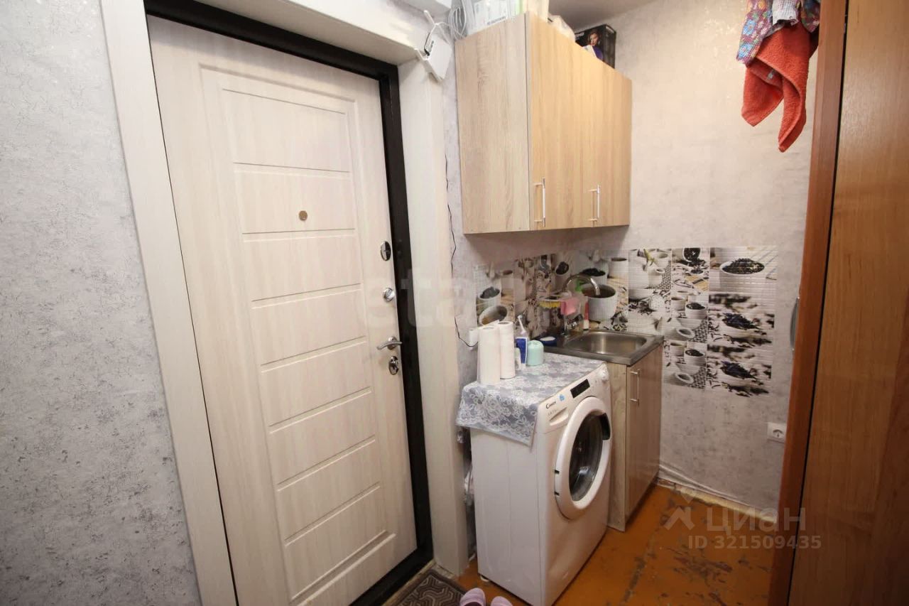 В комнате выполнен косметический ремонт: натяжной потолок, оклеены обои, установлена новая металлическая входная дверь, заведен водопровод, есть выход для подключения стиральной машины. Санузел и душевая находятся в общем пользовании на этаже .