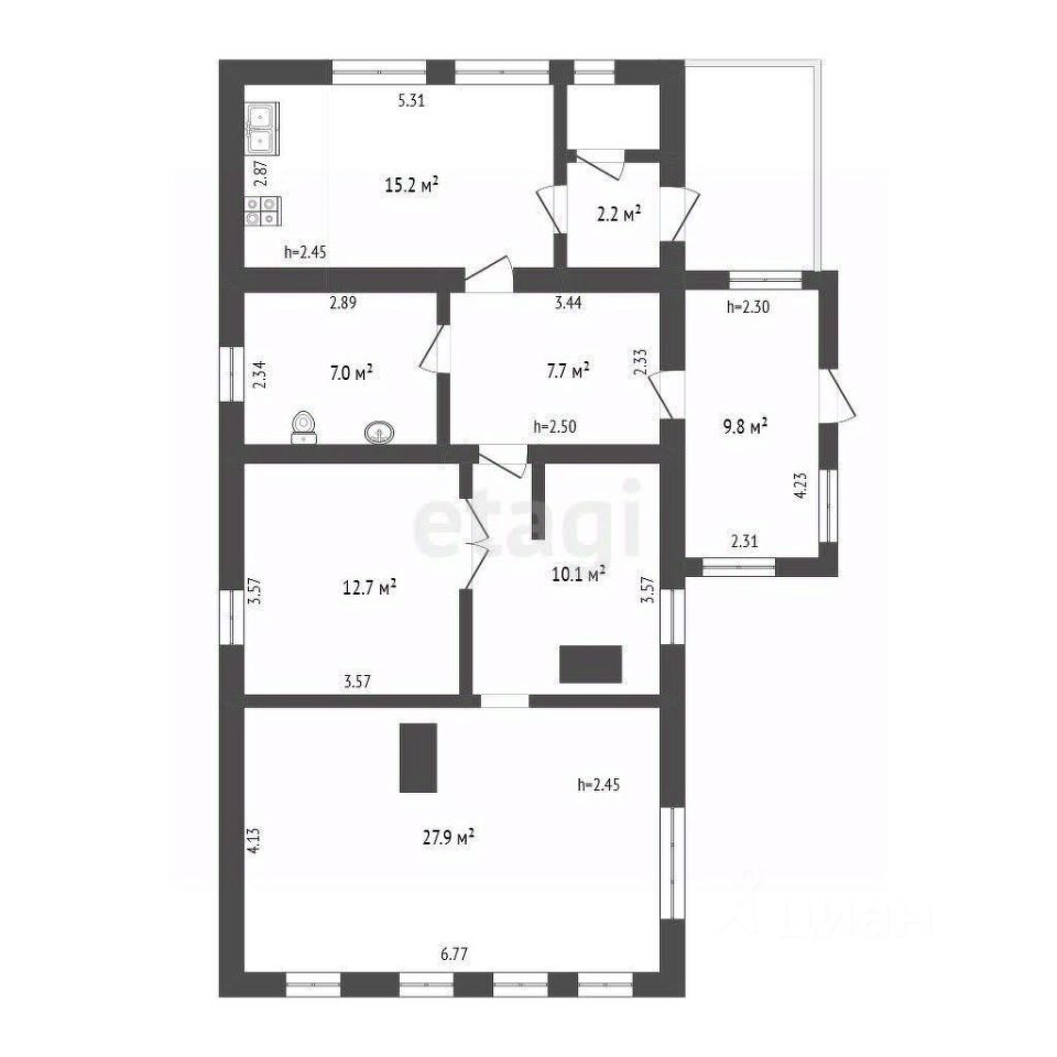 В основной части дома выполнен свежий ремонт в спокойных тонах, установлены современные стеклопакеты, а значит вам остается просто расставить мебель по своему усмотрению и наслаждаться вашей новой жизнью. Текущая планировка позволяет вам обыграть пространство по своему усмотрению: просторная гостиная для посиделок с друзьями и родственниками или несколько отдельных спален для всех членов семьи - все возможно. Кроме обозначенных комнат вас ожидает большая входная зона, что станет прекрасной прихожей, где можно организовать много мест хранения, и полноценная ванная комната. Согласитесь, это важно!