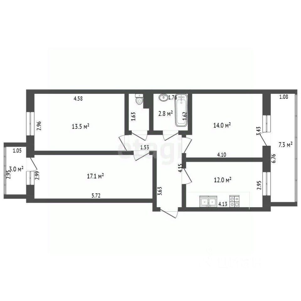 О квартире: Четкая и удобная планировка включает три изолированные комнаты, каждая из которых станет личным уголком для члена вашей семьи. Большие окна дарят ощущение простора и наполняют интерьер естественным светом, а две уютные застеклённые лоджии (6 м² и 3 м²) — это ценное дополнение.