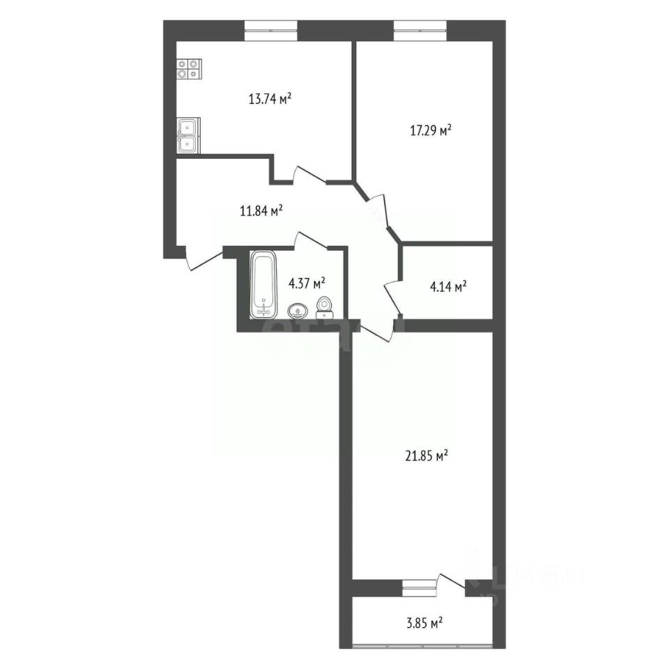- Продуманная планировка на две стороны: Квартира спланирована таким образом, что жилые комнаты выходят на разные стороны дома, обеспечивая максимальное количество естественного света и улучшая вентиляцию помещений.
