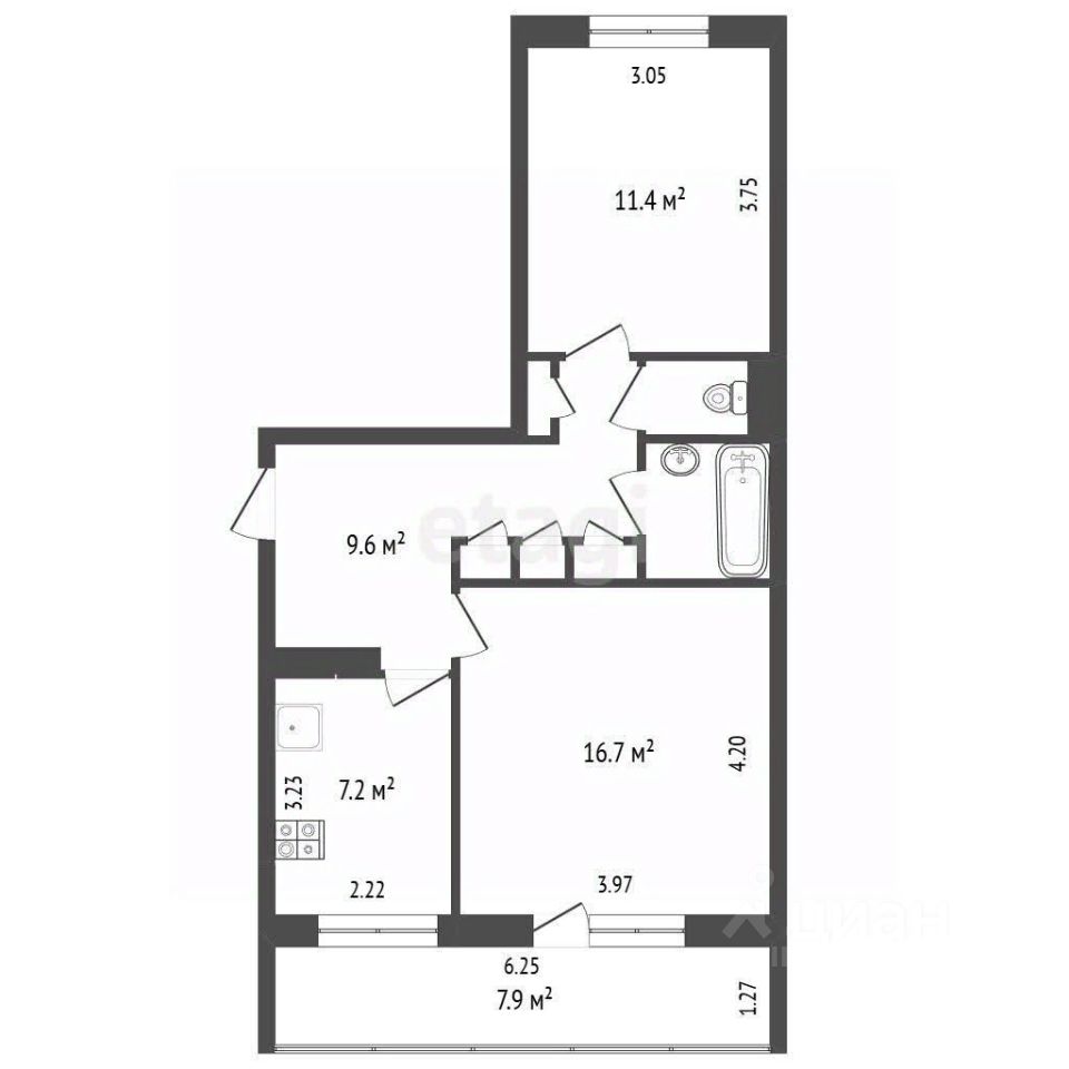 Преимущества квартиры: • Раздельный санузел, ванна в кафеле. • Заменены трубы на пластиковые. • Застекленная лоджия площадью 6 метров.