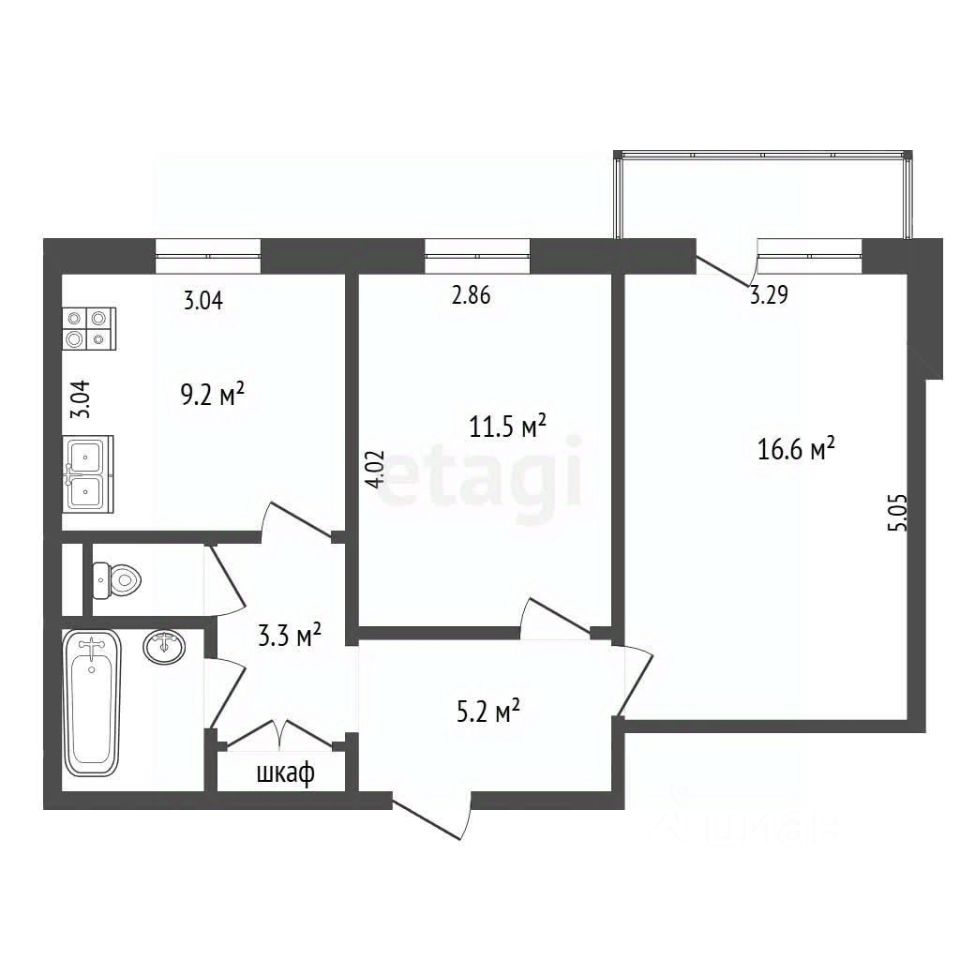 Кухня квадратная, правильной формы позволит разместить полноценный кухонный гарнитур и обеденную группу. Комнаты раздельные, одна из них имеет выход на лоджию, лоджия застеклена пластиковыми окнами.