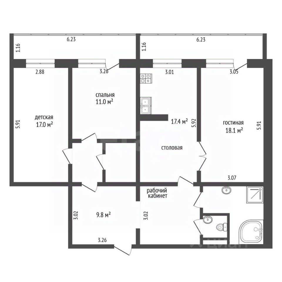 Санитарный рай: Расслабьтесь в тёплой воде после долгого рабочего дня или примите контрастный душ для утреннего пробуждения. Отдельный санузел с умывальником, гигиеническим душем и водонагревателем создают комфортные условия гигиены и быта.